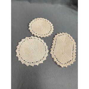 Handmade Crochet Lace Hot Pads plates Set of 3 Beige Cotton