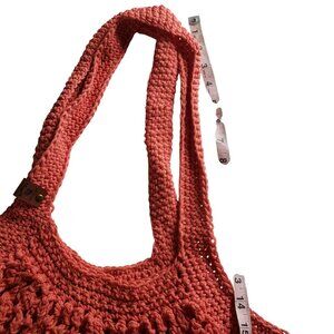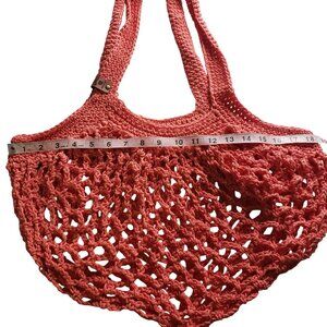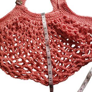 Handmade Crochet Mesh Market Bag Coral Pink Cotton Farmers Market Reusable Beach