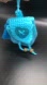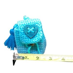 Handmade Crochet Mini Bag Keychain – Blue Colorblock, with Heart Button & Tassel
