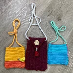 handmade, crochet, mini bag, set, unbranded, multicolor, pouch, lot, boho, artisanal, colorful, festival, gift, unique, bohochic