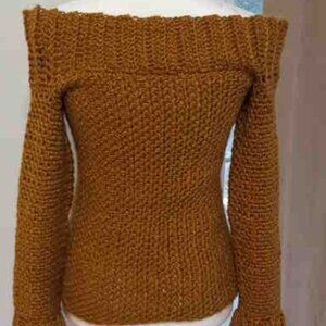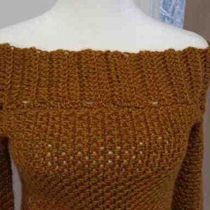 Handmade Crochet Off the Shoulder Sweater S Mustard Yellow