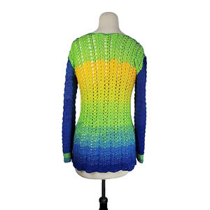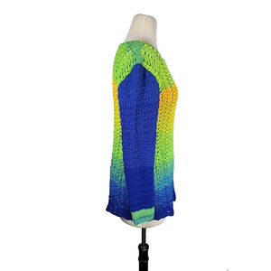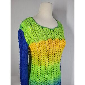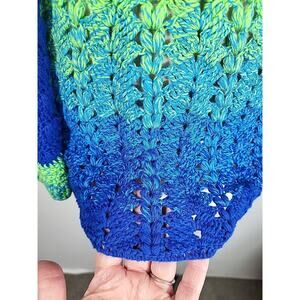 Handmade Crochet Ombre Sweater M Green Blue Open Knit Boho Festival Hippie Indie