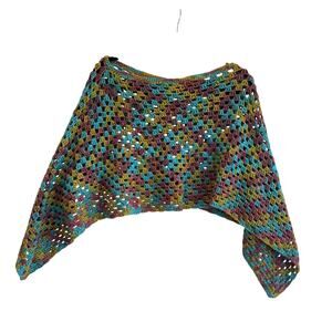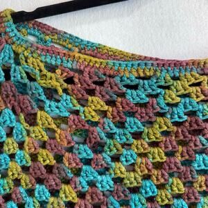 Handmade Crochet Poncho Multicolor Boho Chic Cabincore Festival Layer One Size