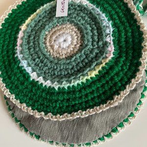 A pair of 100% Handmade Round Crochet pot holder for your kitchen or as a Valentines Day Gift