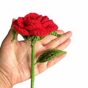 Handmade Crochet Flower Rose Red medium Size 10 Inches New
