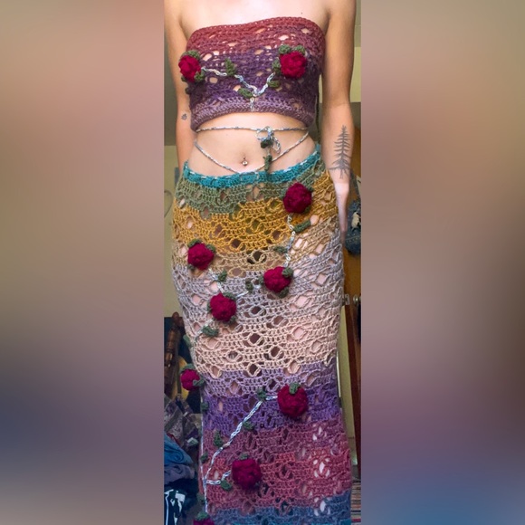 Handmade with love!! crochet multicoloured mermaid skirt with roses - perfect for a fairycore or boho look!