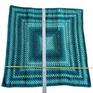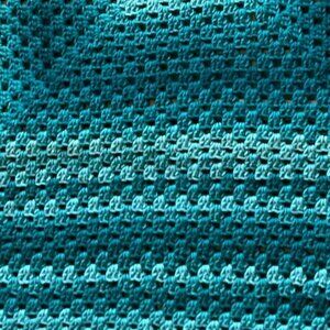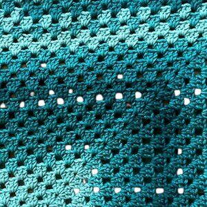 Traditional granny-style teal crochet blanket with finished edges all around.