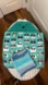 Also a beautiful full handmade cotton dogs with sun glasses tee towel in teal green blue, white, gray, black, blue, pink and tan. Acrylic crochet topper and gray and black neat button. Dry your hands when cooking. Hang on your oven handle. Any pup, puppy or doggie lovers? Dog lover set!