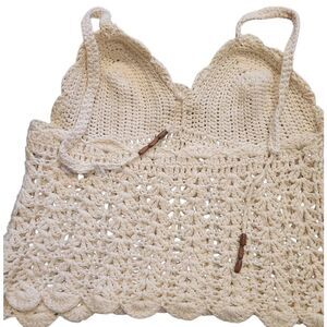 Handmade Crochet Top Women's Small Ivory Halter Flower Beach Y2K
