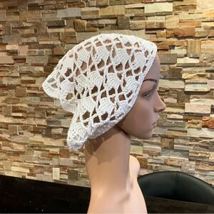 Elegant white crochet hair cover. The bandana is perfect for any summer style and for the beach. 100% cotton. The bandana is new. The Miu Miu brand offers such crocheted bandanas.