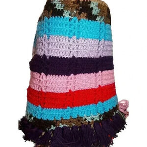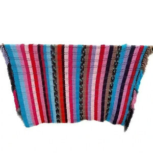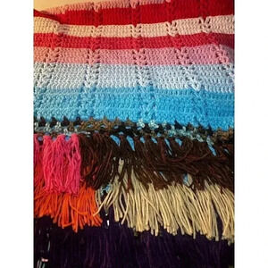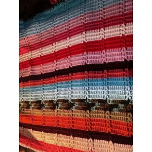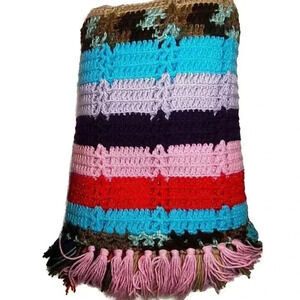 This handmade crocheted Afghan throw blanket boasts an impressive size of 83\"x62\" and features bright, vivid colors that are sure to brighten up any room. The intricate crochet work showcases the Afghan's rectangular shape and multicolor design, making it a wonderful addition to any home decor.