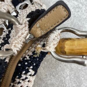 Handmade Crocheted Aluminum Soda Pop Top Bamboo Handles Purse Handbag Tan Black