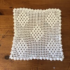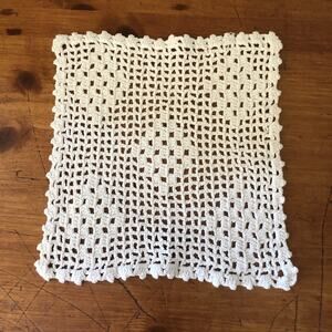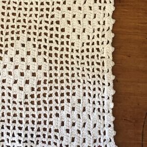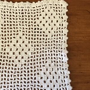 Handmade Crocheted Arm Chair Doily Set Rectangular White Lace Scalloped Edge