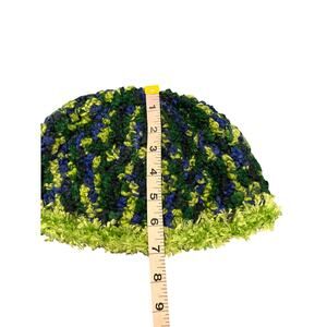 Handmade Crocheted Blue Green Beanie Hat & Fringed Scarf