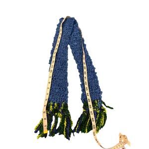 Handmade Crocheted Blue Green Beanie Hat & Fringed Scarf