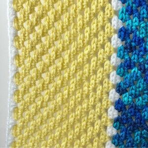 Handmade Crocheted Blue,Yellow & White Granny Blanket Afghan 48"x 56"