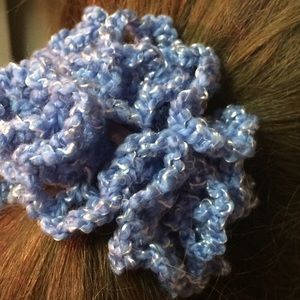 Handmade Crocheted Decorative Hair Accessory. A medium blue with the correct amount of sparkle.