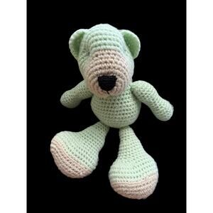 Handmade Crocheted Light Green and Brown Teddy Bear