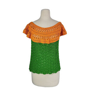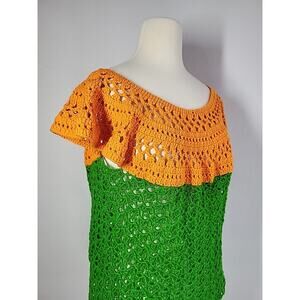 Handmade Crocheted Open Knit Sweater Small Green Orange Festival Rave Coachella