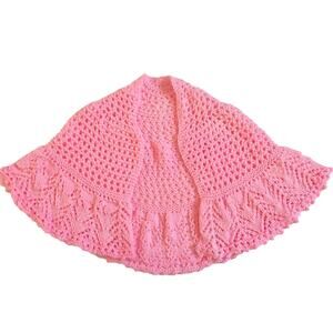 Handmade Crocheted Pink Barbie Shawl Prayer Festival Boho Hippie Custom Made EUC