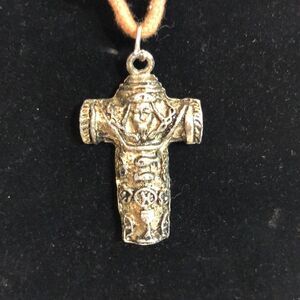 Handmade Cross Pendant on Beaded Fabric Cord OOAK