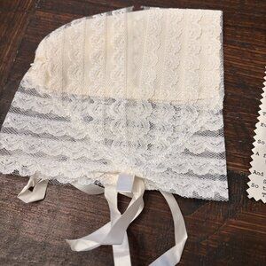 Handmade Cross Stitch Baby Bib ~ Wedding Handkerchief / Bonnet ~ Something Old