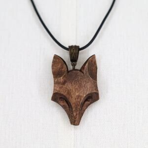 Handmade Curved Wooden Wolf Eco Friendly Minimalist Modern Pendant Necklace