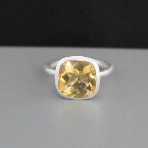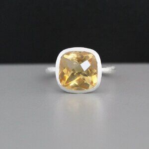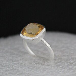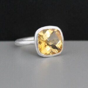 Handmade Cushion Cut Citrine Ring: Sterling Silver Statement Ring