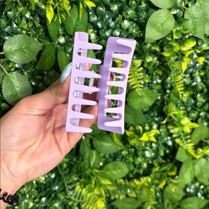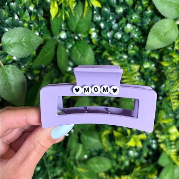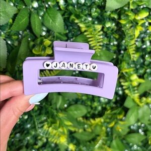 Matte lilac hair claw with decorative letter beads. Secure spring clip for everyday wear. Cute gift-ready accessory.