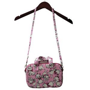 Custom, one of a kind, hand crafted bag. Disney The Aristocats Marie print pink fabric exterior. Gray and white polka dot and cat print fabric interior. Zipper closure. Detachable, adjustable shoulder strap. Double handles. Soft, foam padded bag. Thin and designed for carrying tablet/electronics.