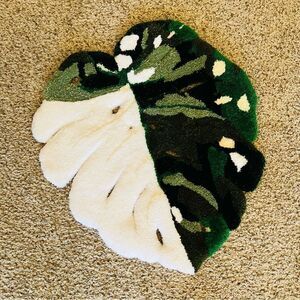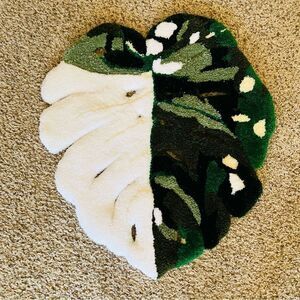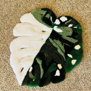 Handmade Custom Thai Constellation Variegated Monstera Green/White Tufted Rug 24” x 23”