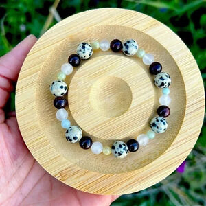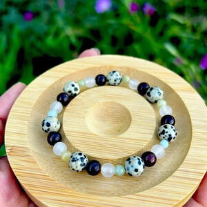 Handmade Dalmatian Jasper + Garnet + Rose Quartz + Morganite bracelet