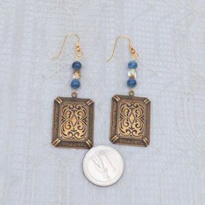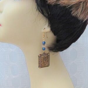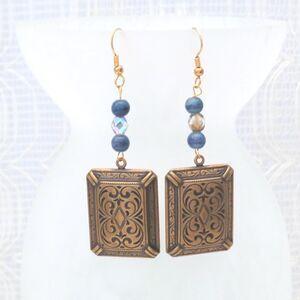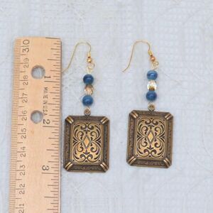 Handmade Dangle Earrings with Gold Square and Beads, Lightweight Vintage Jewelry