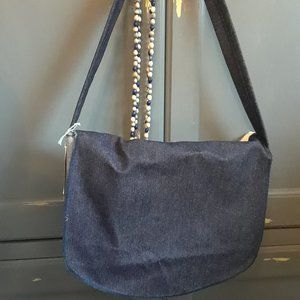Handmade Dark Denim Shoulder Bag Purse Vintage Quilt - Blues
