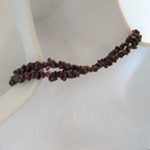 Hand Crafted double strand garnet statement necklace is made with dark red, raw garnets. Rough garnets are a burgundy hue. Bead work is complimented by copper plated findings. Two strand necklace features side toggle closure and center loop. Necklace measures 19.5 inches in length. Center drop measures at 3 inches. Reasonable offers gladly accepted. *ALL ITEMS FROM PET FRIENDLY/SMOKE FREE ENVIRONMENT.*
