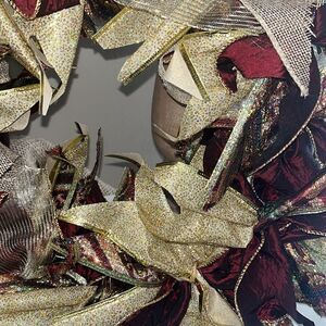 Colors are shades of a dark red, gold, tan (glittery ribbon used)