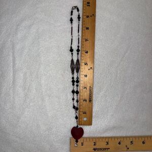 Handmade (by me) Dark Vampire gothic necklaces with black, silver red beads, featuring a heart pendant and a cross pendant.