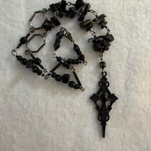 gothic jewelry, vampire necklace, heart pendant, cross charm, black beads, silver accents, handmade accessory, alternative style, witch inspired, dark aesthetic