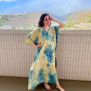 Handmade Dark and Light Green Kaftan Summer Dress Caftan Vacation Pool Party