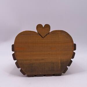 Handmade Decorative Wooden Basket Apple Shaped Storage Box Heart Stem 6 inch