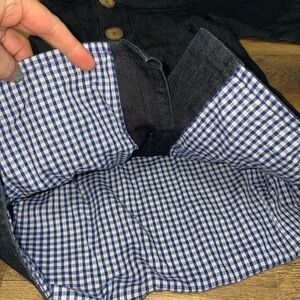 β’ Color: Dark wash denim with blue/white gingham check lining