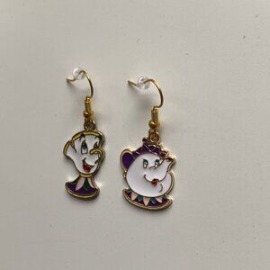 These earrings feature adorable charms of the characters Chip and Mrs. Potts from Beauty and the Beast. Celebrate the tale as old as time with these playful earrings - perfect for Disney fans, cosplay accessories, or everyday wear with a fun twist. Whether you're headed to a Disney park, planning a themed outfit, or looking for a unique gift for a fan of Beauty and the Beast, these earrings add a touch of fairytale charm.