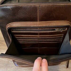 Handmade Distressed Leather Backpack, 13"W x 14.5"H x 4.5"D