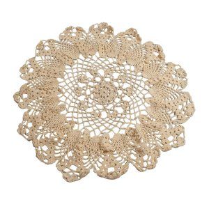 This Handmade Doily Crochet Floral End Table is a beautiful 17-inch vintage piece, perfect for adding a touch of Nana Grandma Lace Cream to your decor. Crafted from Beige lace in a flower pattern, this medium-sized doily is a true testament to artisan craftsmanship.