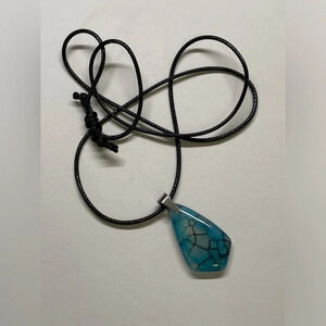 Handmade Dragons Vein Agate Blue Black Slider Necklace