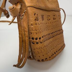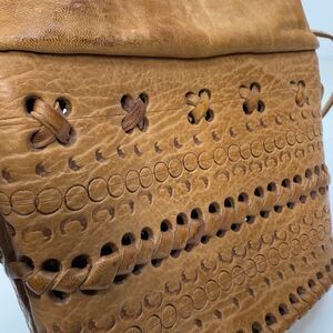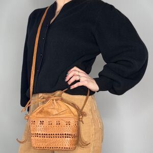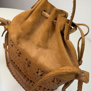 Handmade Drawstring Small Leather Bucket Shoulder Crossbody Bag