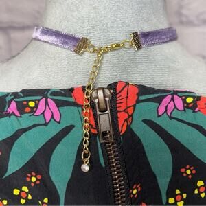 Elegant velvet choker necklace featuring a glass heart pendant with dried, pressed flowers inside. The purple velvet adds a touch of sophistication to any outfit. Adjustable from about 14-17” with a lobster claw closure.