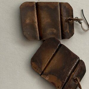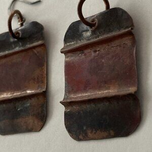 Drop Earrings Copper, Forged and Fold Formed Hammered Painted Flame rustic aged Patina. Acrylic Sealed