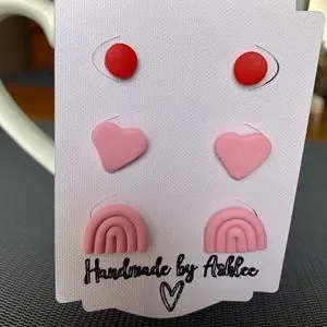 Handmade Clay Earrings Set of 3 Three Studs Pink & Red Cross Posted on Mercari - it’s cheaper, shhh 🤫