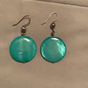 Unique aqua colored beaded earrings approx 2” long. Excellent condition